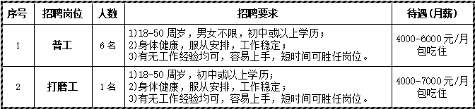 嶄新的標(biāo)準(zhǔn)工業(yè)廠房,工作環(huán)境舒適,新裝修的宿舍,設(shè)施齊全,居住環(huán)境溫馨。享受國家法定有薪假期、生日福利、節(jié)日福利、年終福利、公司年會、旅游等。本公司訂單充足穩(wěn)定,長白班,待遇好,包吃住,準(zhǔn)時發(fā)放工資。所招崗位的工作內(nèi)容均有人教,晉升和加薪空間大。歡迎來公司面試或電話詳細(xì)了解!